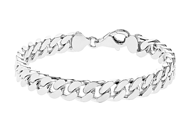 Sterling Silver 8.1mm Square Curb Link Bracelet with a lobster claw clasp.