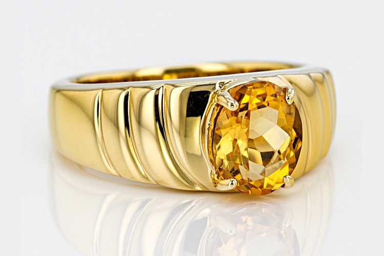 2.00ct oval Brazilian citrine solitaire, 18k yellow gold over sterling silver gent's ring - Size 11