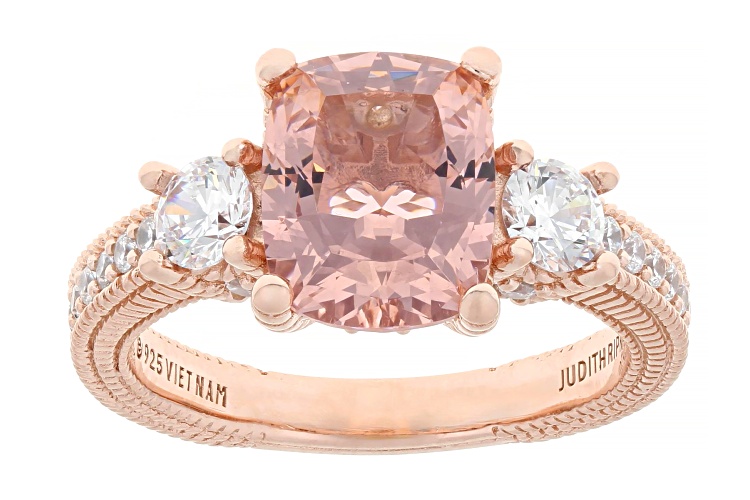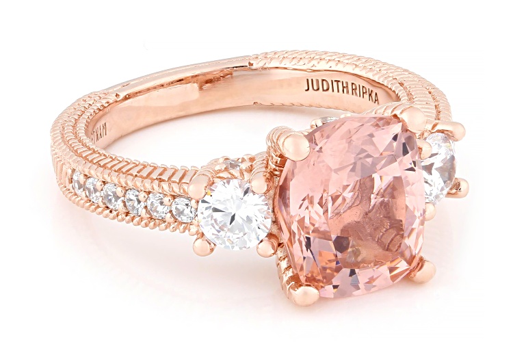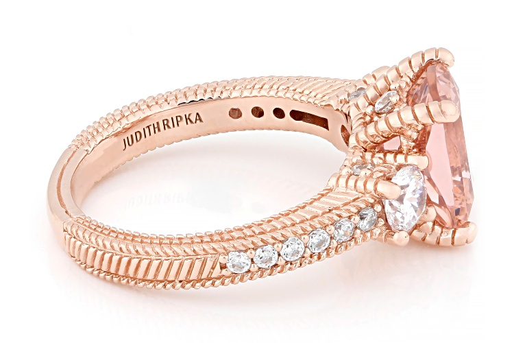 Judith Ripka 4.62ctw Morganite Simulant & White Bella Luce® 14k Rose Gold Clad Princess Ring - Size 10