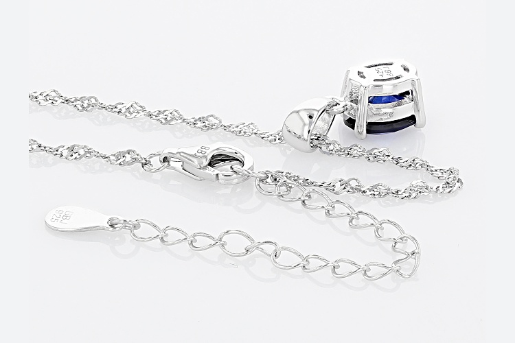 • 1.27ct Oval Lab Created Blue Sapphire Rhodium Over Silver September Birthstone Pendant Chain