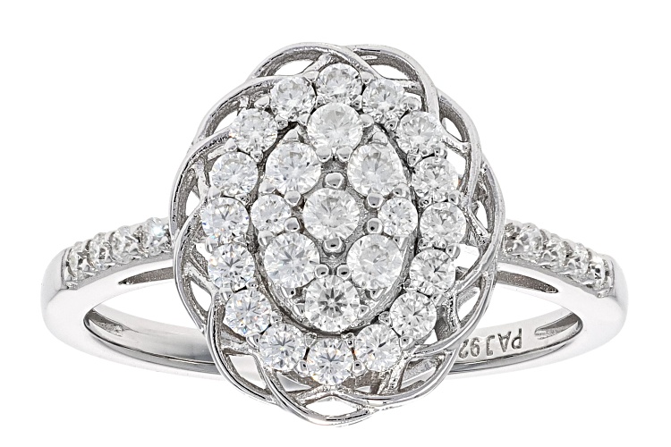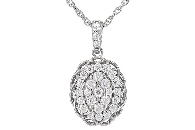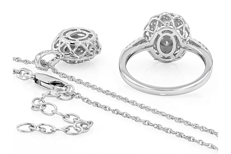 Moissanite Fire® 1.74ctw diamond equivalent weight round brilliant, Platineve® earrings and ring with pendant and 18 inch rope chain set. Ring measures approximately 3/4" L x 7/16" W and is not sizeable. Earrings measure approximately 7/16" L x 5/16" W and have push backs. Pendant measures approximately 3/4" L x 3/8" W and has lobster clasp. Actual moissanite weight is 1.26ctw.