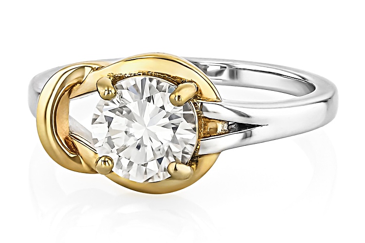 MOISSANITE FIRE® 1.20CT DEW ROUND PLATINEVE® AND 14K YELLOW GOLD OVER PLATINEVE TWO TONE RING - Size 8