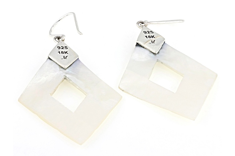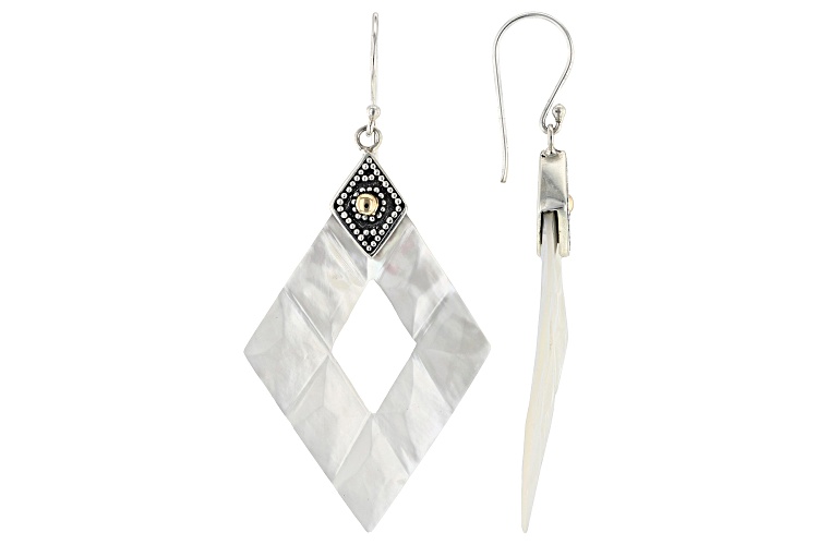 Artisan Collection of Bali™ 40x28mm White Mother-of-Pearl Sterling Silver & 18K Gold Accent Earrings. Oxidized. Measures Approximately 2.41"L x 1.12"W. Fish Hook Backings.
