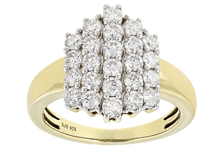 MOISSANITE FIRE® 1.44CTW DEW ROUND 14K YELLOW GOLD OVER SILVER RING - Size 9