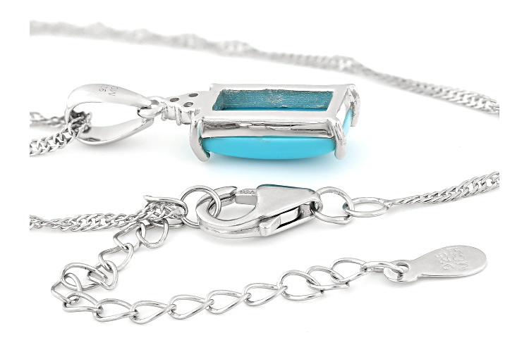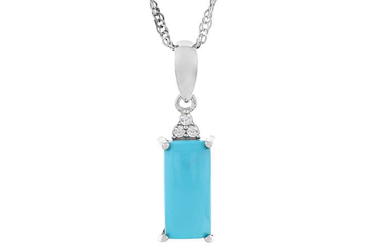 12x6mm Baguette Sleeping Beauty Turquoise with 0.05ctw Round White Zircon Rhodium Over Sterling Silver Pendant with Chain. Measures Approximately 0.93"L x 0.28"W. 18" Singapore Chain with 2" Extender. Lobster Claw Clasp. Accent Stones Primarily Zircon.