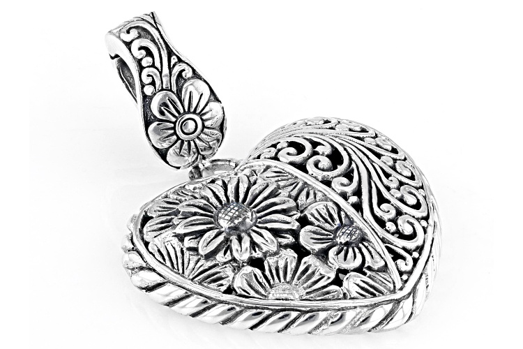 Artisan Collection of Bali™ Sterling Silver Floral & Heart Enhancer Pendant