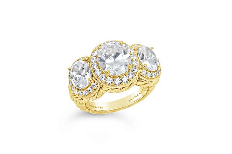 • Judith Ripka 10.48ctw Oval and Round Bella Luce Diamond Simulant 14K Gold Clad Ring - Size 5
