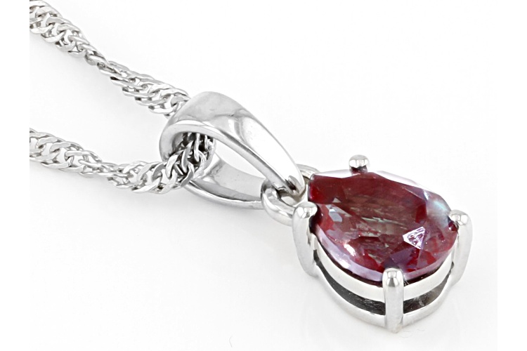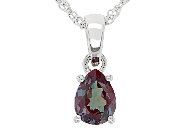 • 1.19ct Pear Lab Created Alexandrite Rhodium Over Sterling Silver June Birthstone Pendant With Chain