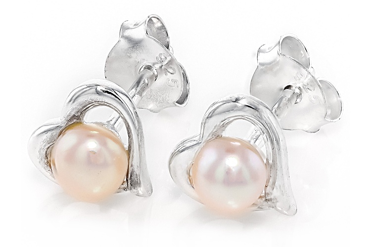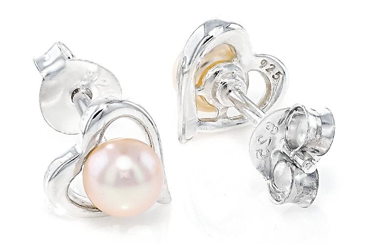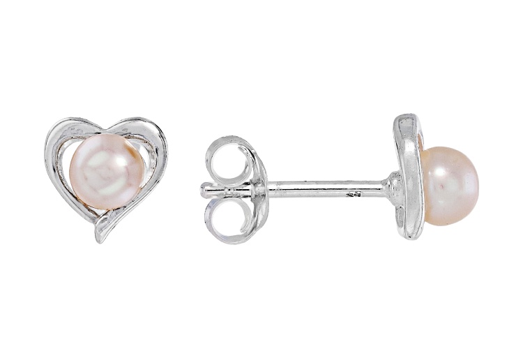 4mm White Cultured Freshwater Pearl Rhodium Over Sterling Silver Earrings