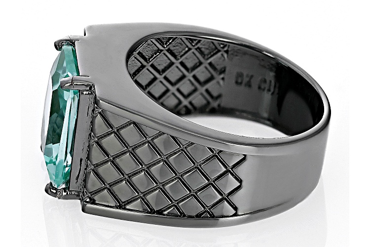 • 6.20ct Lab Created Green Spinel With 0.15ctw Black Spinel, Black Rhodium Over Brass Men's Ring - Size 12