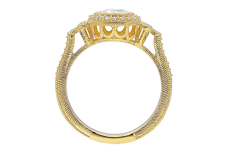 Judith Ripka 3.26ctw Round Bella Luce Diamond Simulant 14k Gold Clad Halo Ring and Band Set. Halo Ring Measures Approximately 0.38"L x 0.75"W. Band Measures Approximately 0.13"L x 0.75"W. not Sizeable.