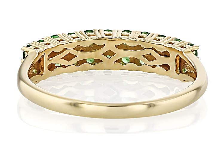 0.60ctw Round Green Tsavorite With 0.03ctw Round White Diamond 10k Yellow Gold Ring. Measures Approximately 0.17"L x 0.76"W.