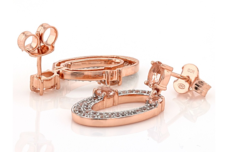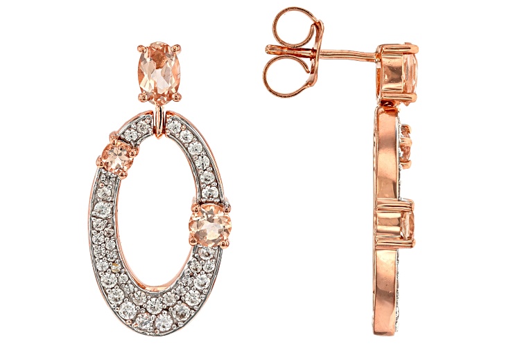 1.30ctw Peach Morganite With 1.00ctw White Zircon 18k Rose Gold Over Sterling Silver Earrings