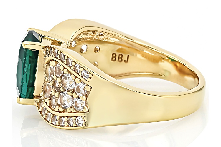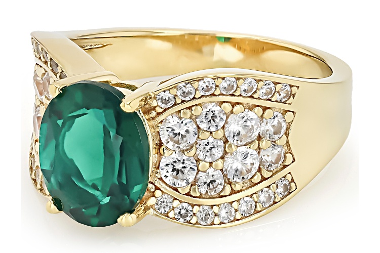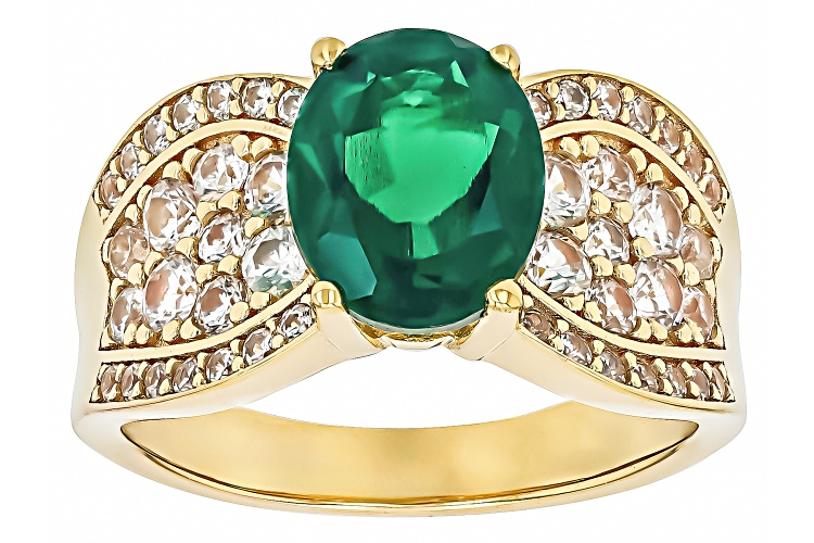 Lab Created Emerald Oval 10x8mm and White Zircon 18K Yellow Gold Over Sterling Silver Ring 2.42ctw - Size 9