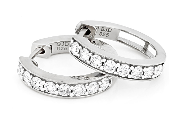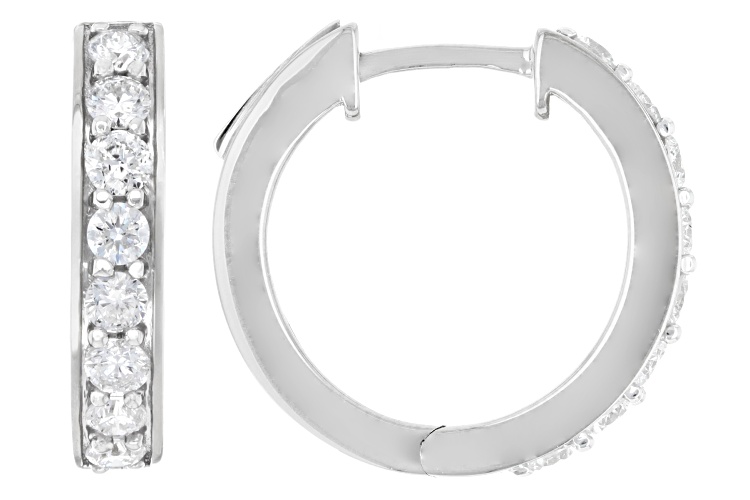 Prazana® Lab-Grown Diamonds 1.00ct round white lab-grown diamond rhodium over sterling silver huggie earrings. Measure approximately 3/4"L x 1/8"W and have hinge with notched post closures. H color, SI clarity minimum.