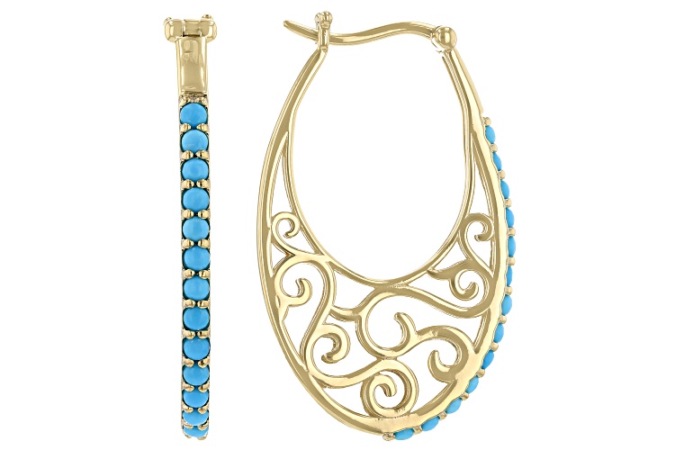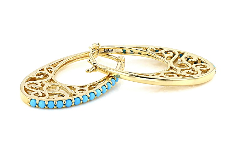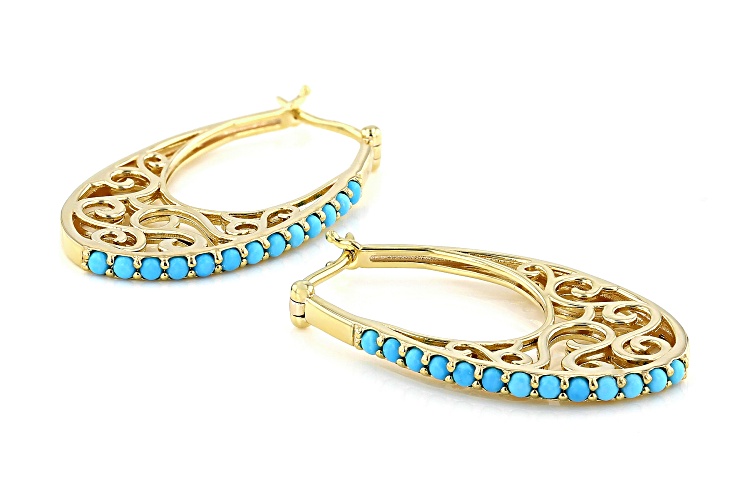2mm Round Sleeping Beauty Turquoise 18k Yellow Gold Over Sterling Silver Hoop Earrings