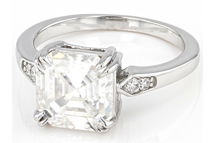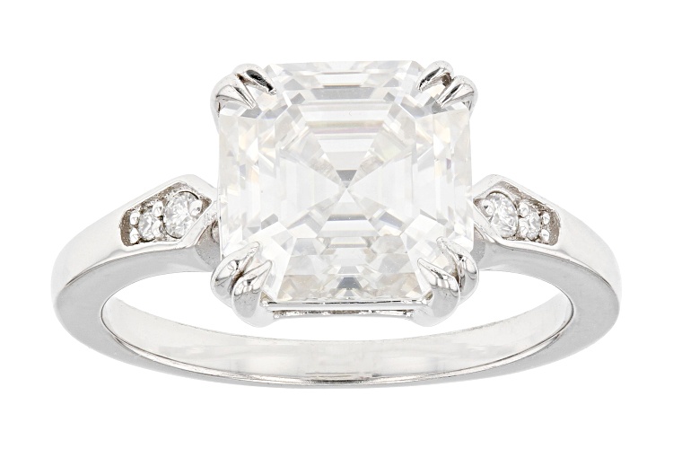 MOISSANITE FIRE® 3.98CTW DEW ASSCHER CUT & ROUND BRILLIANT PLATINEVE® RING - Size 10