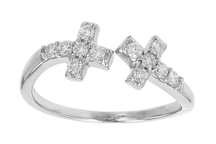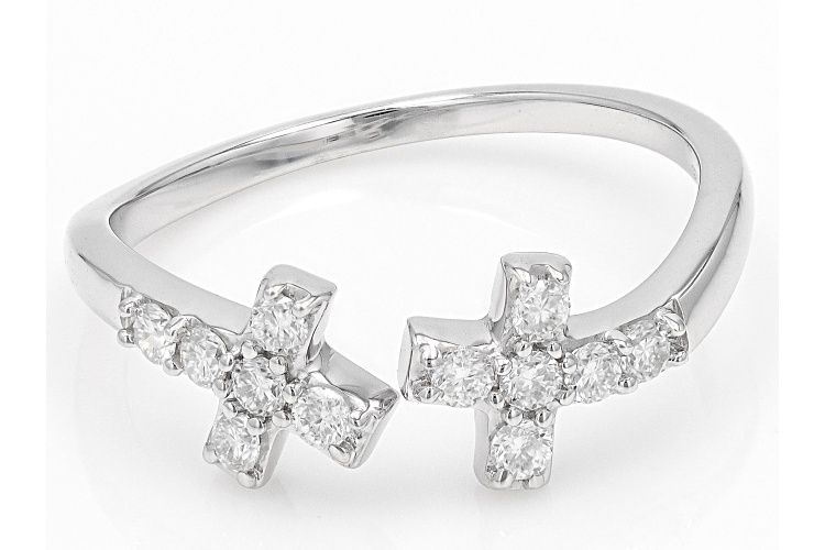 MOISSANITE FIRE® .36CTW DEW ROUND PLATINEVE® CROSS RING - Size 7