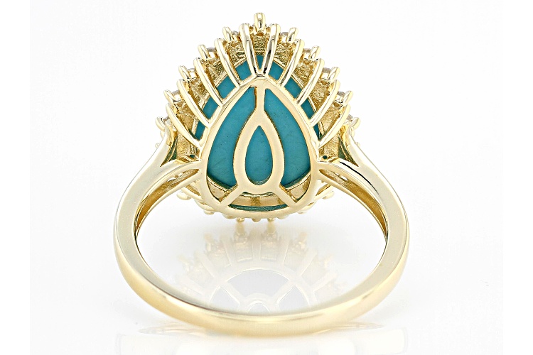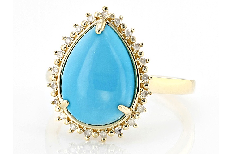 14x10mm Pear Blue Sleeping Beauty Turquoise With 0.09ctw Round White Diamond 10k Yellow Gold Ring. Measures Approximately 0.71"L x 0.53"W. Finished Undergallery.