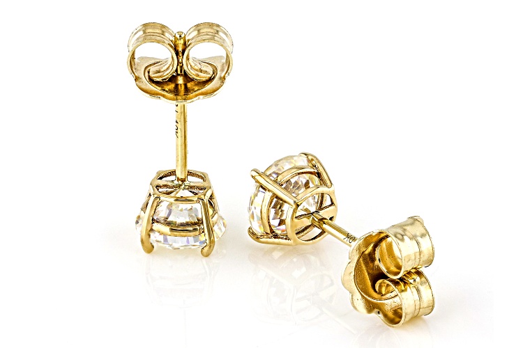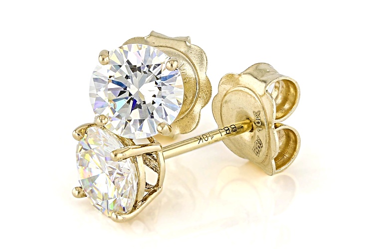 2.26ctw Round Lab Created Strontium Titanate 10k Yellow Gold Earrings. Measures Approximately 0.23"L x 0.23"W. Pushbackings.