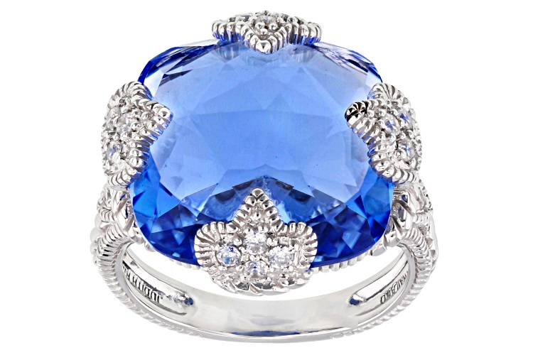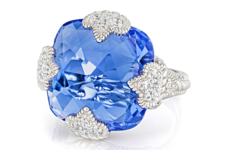 • Judith Ripka 14.20ctw Lab Created Blue Quartz & Bella Luce® Rhodium Over Silver Fleur Epoch Ring - Size 10
