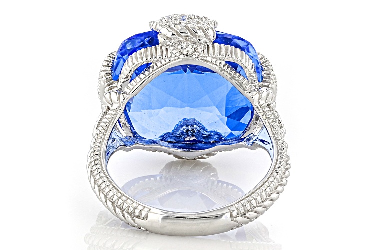 Judith Ripka 14.20ctw Lab Created Blue Quartz & Bella Luce® Rhodium Over Silver Fleur Epoch Ring - Size 10