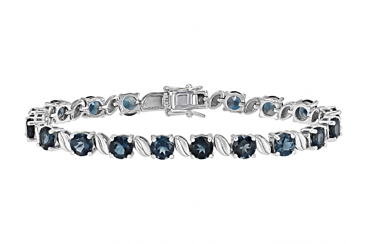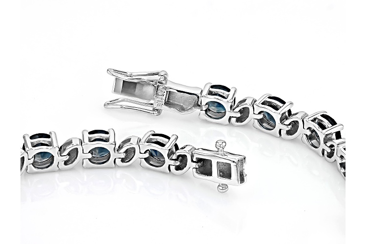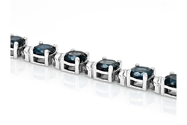 14.33ctw Round London Blue Topaz Rhodium Over Sterling Silver Tennis Bracelet. Measures Approximately 0.25"W. Box clasp with double safely lock. Stainless Steel Tongue.