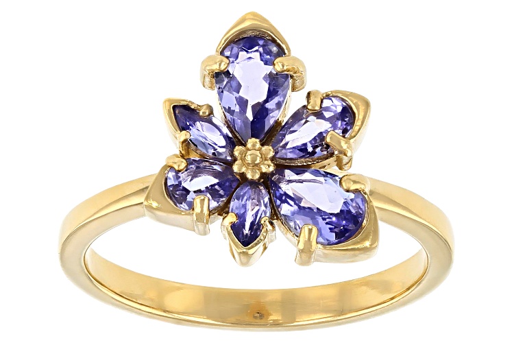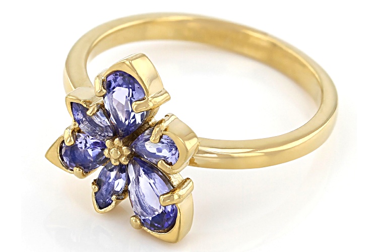 1.11ctw Mixed Shape Tanzanite 18k Yellow Gold Over Sterling Silver Asymmetrical Flower Ring - Size 6
