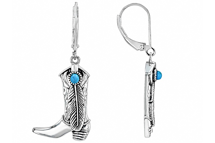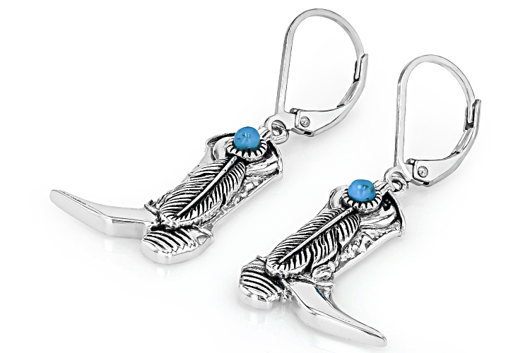 Southwest Style by JTV™2mm Blue Turquoise Sterling Silver Cowboy Boot Earrings