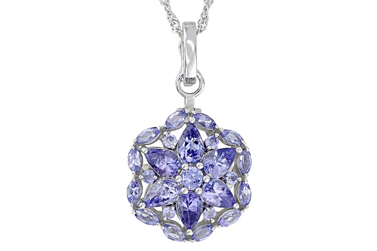 • 3.31ctw Mixed Shapes Tanzanite Rhodium Over Sterling Silver Enhancer Pendant