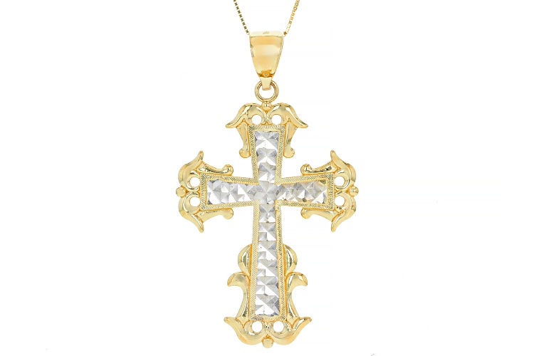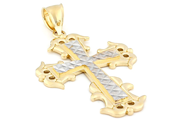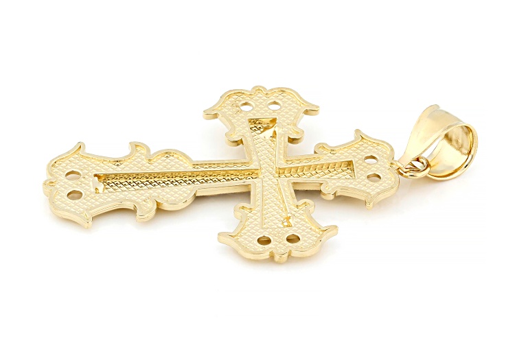 10k Yellow Gold Cross Pendant. Measures Approximately 1 7/16"L x 5/8"W and 3mm Bail.