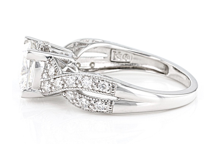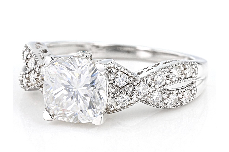 MOISSANITE FIRE(R) 2.40CTW DEW CUSHION CUT AND ROUND PLATINEVE(R) RING - Size 8