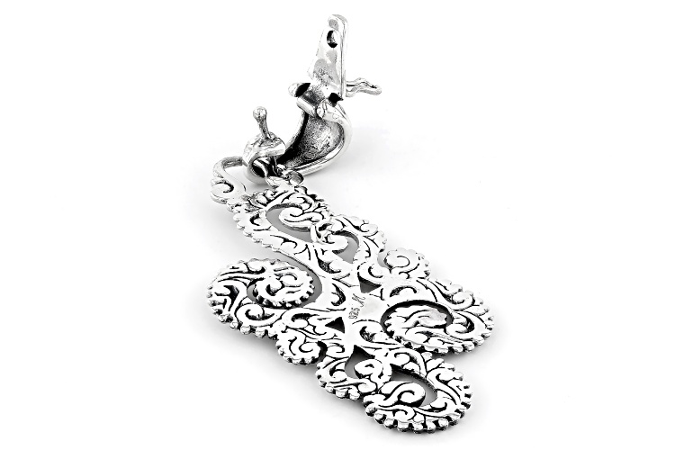 Introducing the Sterling Silver Swirl Enhancer Pendant from our Artisan Collection of Bali™! This exquisite piece is crafted with stunning sterling silver using an oxidized finishing technique, enhancing its intricate swirl design. The pendant's dimensions are perfectly balanced to make a statement while remaining elegant. With a secure closure type, this pendant will elevate any outfit effortlessly. Add a touch of sophistication and style to your look with this unique Sterling Silver Swirl Enhancer Pendant today! Measures Approximately 2.69"L x 1.0"W.