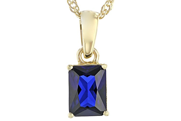 1.45ct Lab Created Blue Sapphire 18k Yellow Gold Over Sterling Silver Birthstone Pendant With Chain