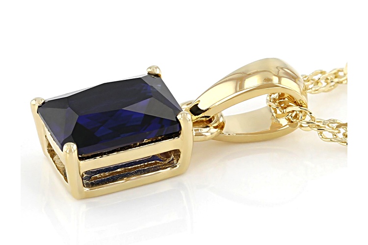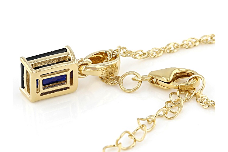 1.45ct Rectangular Octagonal Lab Created Blue Sapphire 18k Yellow Gold Over Sterling Silver September Birthstone Pendant With 18" Singapore Chain. Measures Approximately 0.66"L x 0.24"W. Lobster Claw Closure. 2" Extender. 3.0mm Bail.