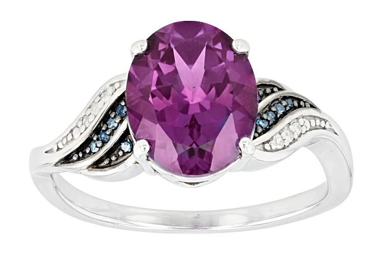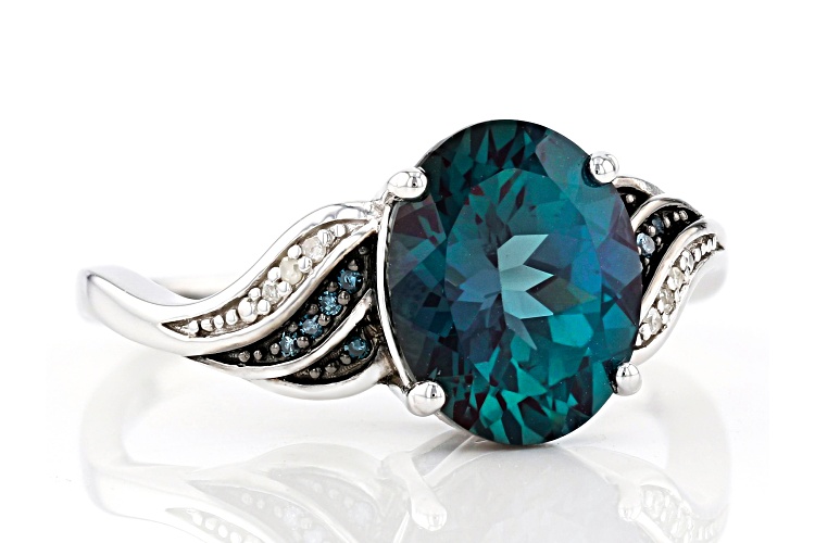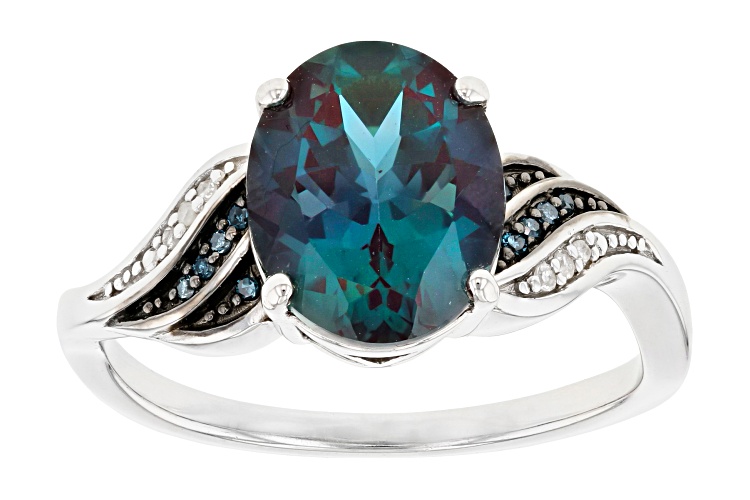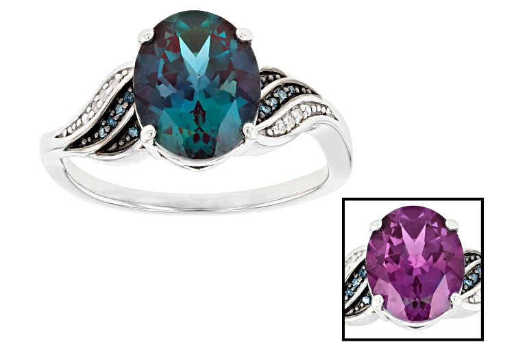 • 2.55ctw Oval Lab Created Alexandrite With Blue & White Diamond Accent Rhodium Over Silver Ring - Size 10