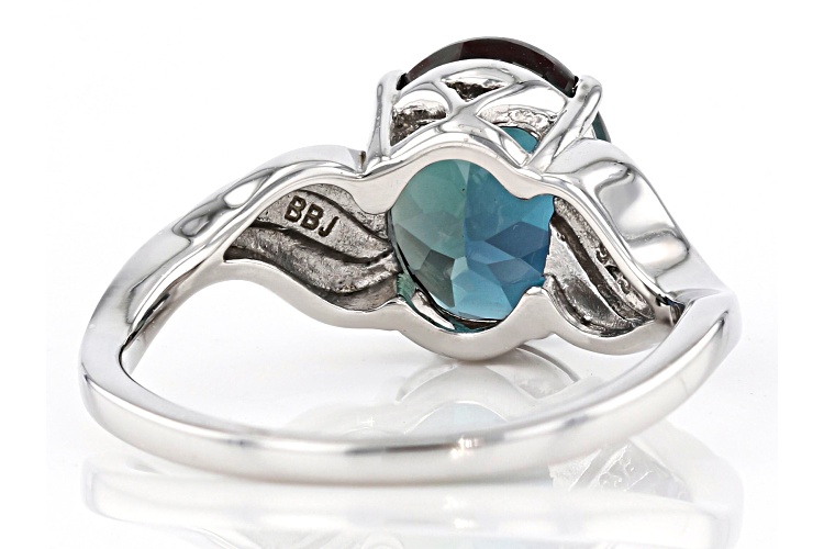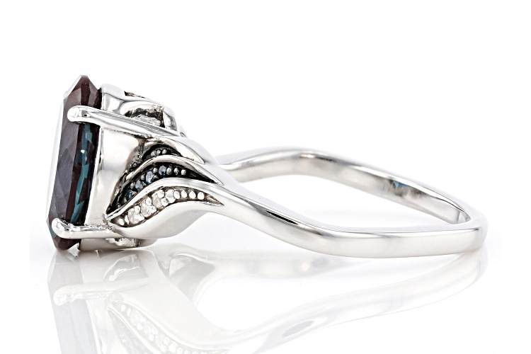 2.55ct Oval Lab Created Alexandrite With .02ctw round Blue diamond and .01ctw round White Diamond Accent Rhodium Over sterling Silver Ring. Measures Approximately 0.67"L x 0.39"W. Not sizeable. Black Rhodium