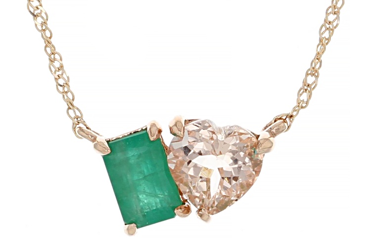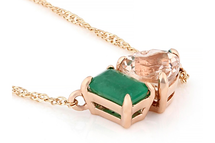 0.72ct Cor De Rosa™ Morganite With 0.38ct Zambian Emerald 10k Rose Gold Toi Et Moi Necklace - Size 18