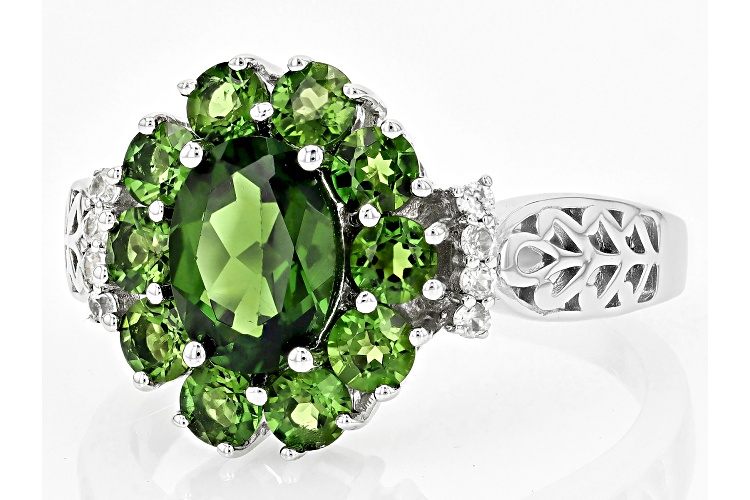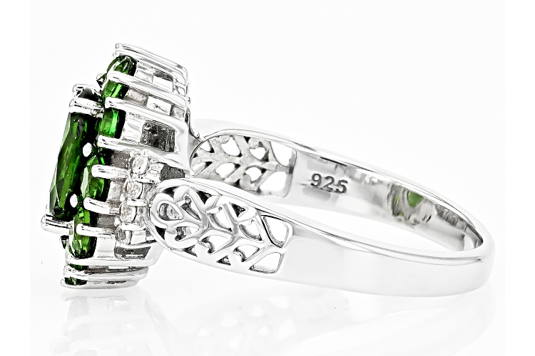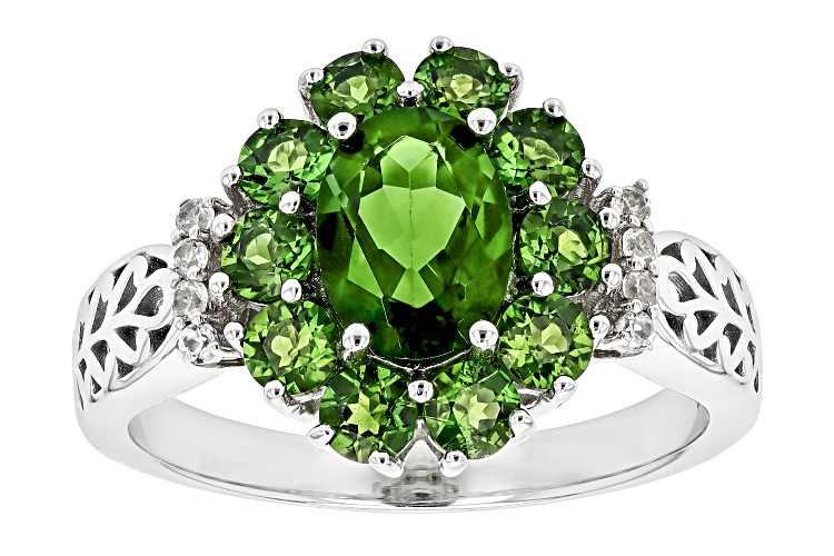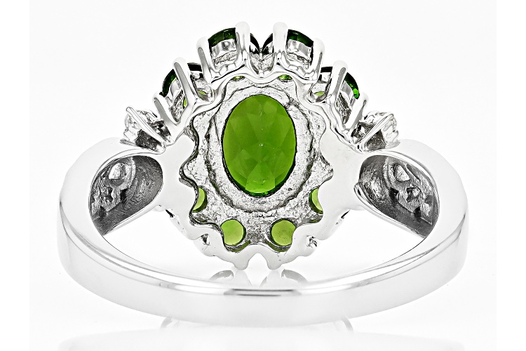 1.00ct Oval And 1.00ctw Round Chrome Diopside With 0.11ctw Round White Zircon Rhodium Over Sterling Silver Ring. Measures Approximately 0.59"L x 0.66"W. Not sizeable. Accent stones primarily zircon.