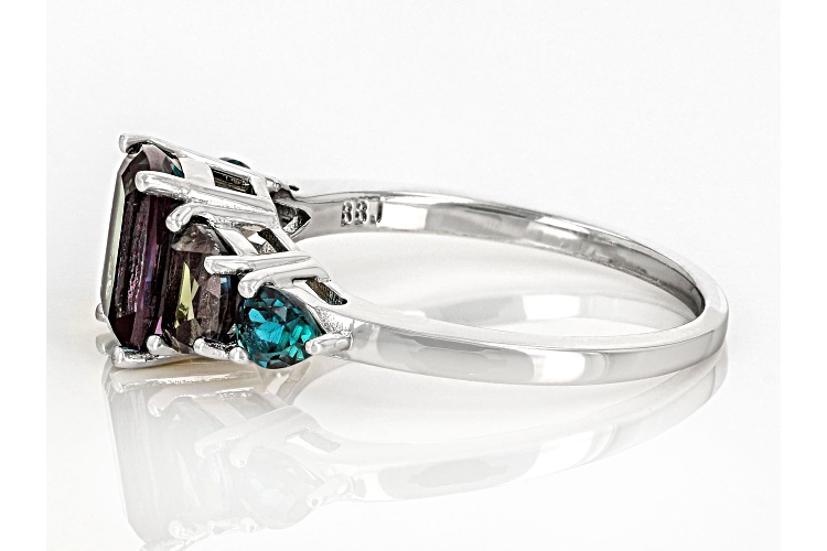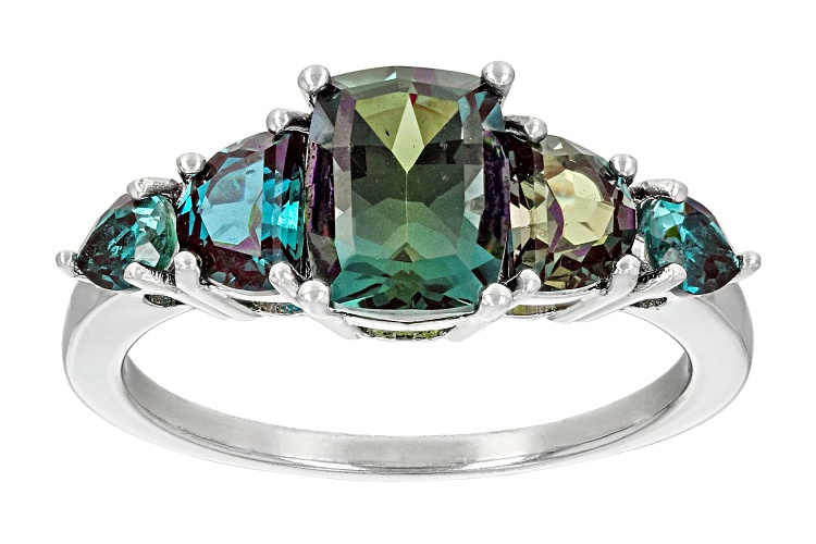 2.52ctw Mixed Shapes Lab Created Alexandrite Rhodium Over Sterling Silver Ring - Size 7