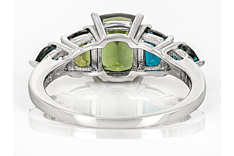 2.52ctw Mixed Shapes Lab Created Alexandrite Rhodium Over Sterling Silver Ring. Measures Approximately 0.81"L x 0.31"W. Not sizeable.