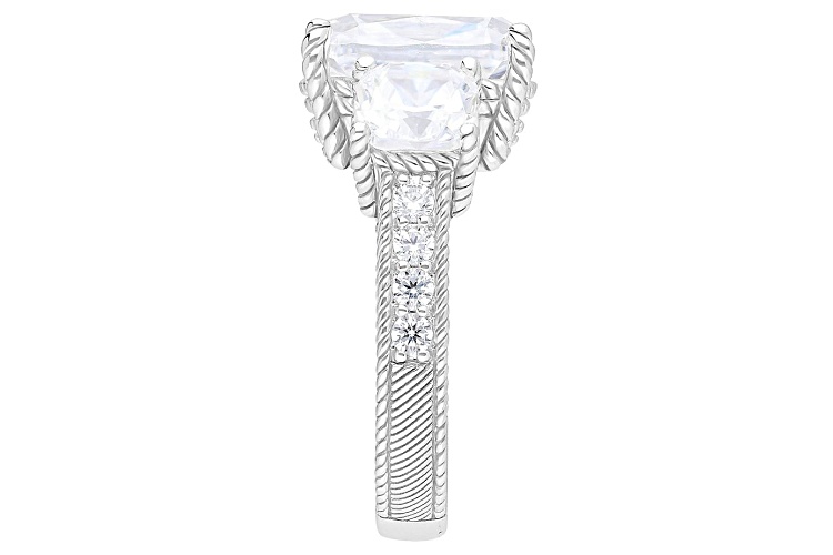 Judith Ripka 14.60ctw Rectangular Cushion and Round White Bella Luce® Diamond Simulant Rhodium Over Sterling Silver Statement Ring. Measures Approximately 0.25"L x 0.75"L. Not Sizeable.