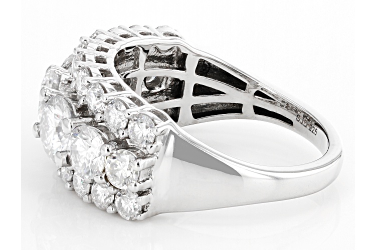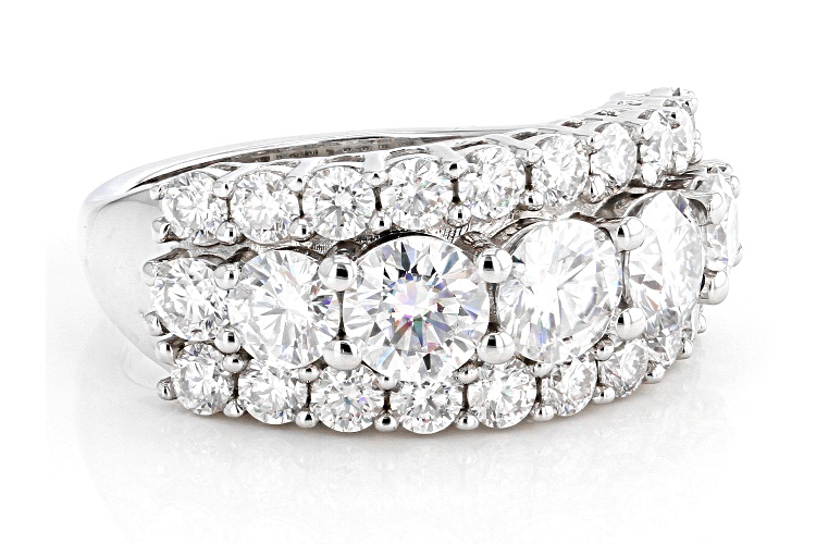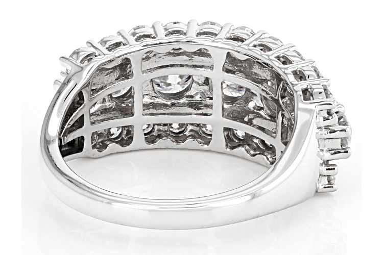 Moissanite Fire(R) 3.36ctw diamond equivalent weight round, Platineve(R) ring. Measures approximately 3/8" L x 1/16" W and is not sizeable. Actual moissanite weight is 2.85ctw.