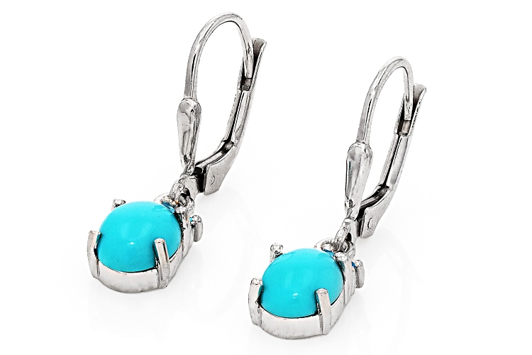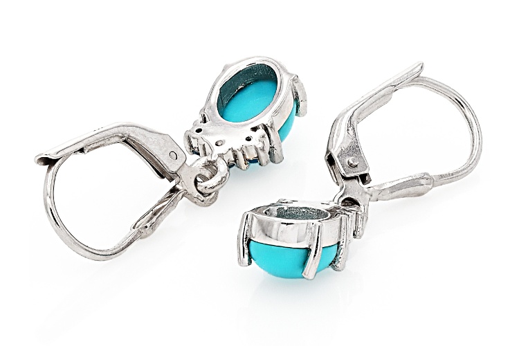 8x6mm Oval Sleeping Beauty Turquoise with 0.12ctw Round Neon Apatite Rhodium Over Sterling Silver Earrings. Measures Approximately 1.05"L x 0.25"W. Lever Backings.