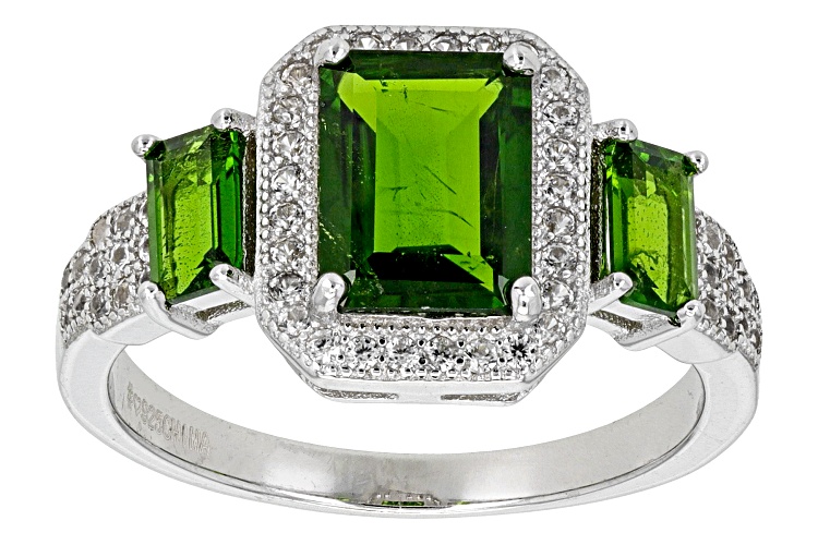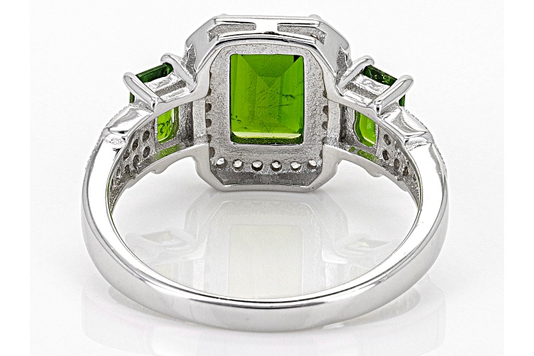 1.94ctw Rectangular Octagonal Chrome Diopside with 0.44ctw White Zircon Rhodium Over Silver Ring - Size 6