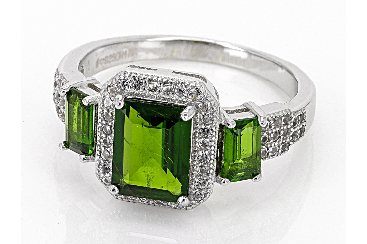 1.94ctw Rectangular Octagonal Chrome Diopside With 0.44ctw Round White Zircon Rhodium Over Sterling Silver Ring. Measures Approximately 0.44"L x 0.81"W. Not Sizeable. Accent Stones Primarily Zircon.