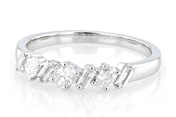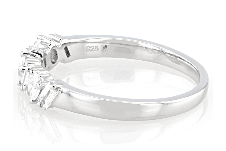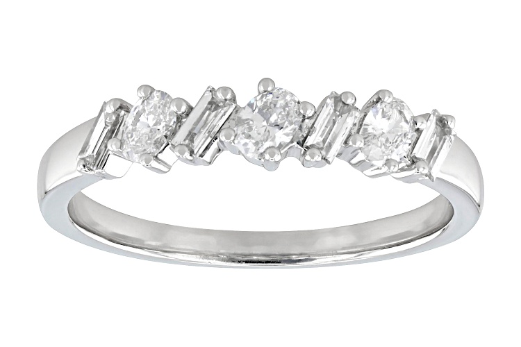 Prazana® Lab-Grown Diamonds 0.40ctw oval and baguette white lab-grown diamond, rhodium over sterling silver band ring. Measures approximately 5/8"L x 1/8"W and is not sizeable. G-H color, SI clarity minimum.