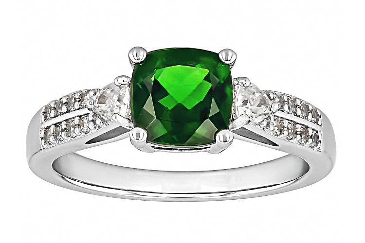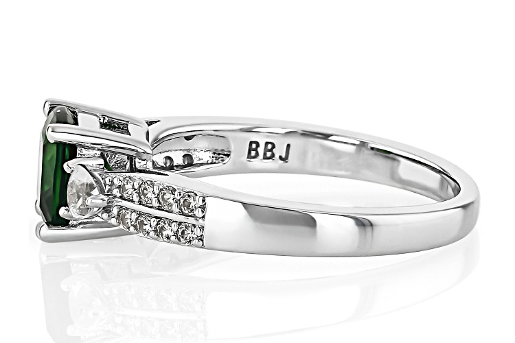 • 1.35ct Chrome Diopside With 0.36ctw White Zircon Rhodium Over Sterling Silver Ring - Size 9
