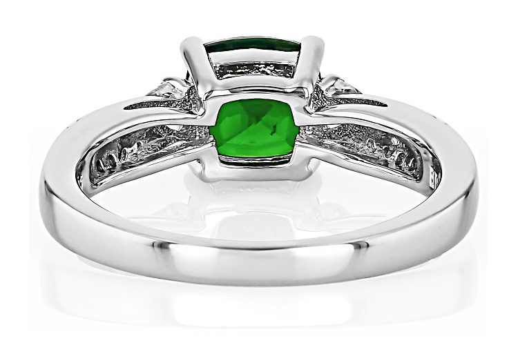 1.35ct Square Cushion Chrome Diopside With 0.14ctw Round And 0.22ctw Trillion White Zircon Rhodium Over Sterling Silver Ring. Measures Approximately 0.27"L x 0.27"W. Not Sizeable. Accent Stones Primarily Zircon.