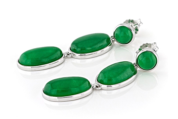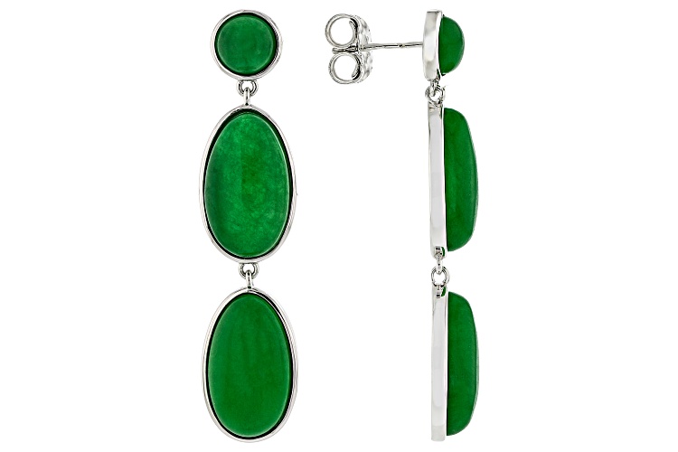 Pacific Style™ Green Jadeite Rhodium Over Sterling Silver Earrings. Measures Approximately 2.00"L x 0.45"W. Push Backs.